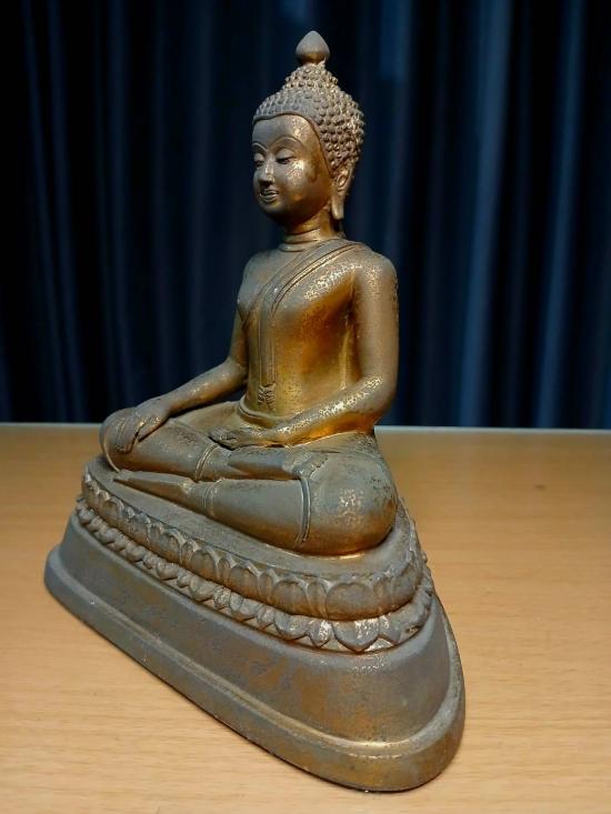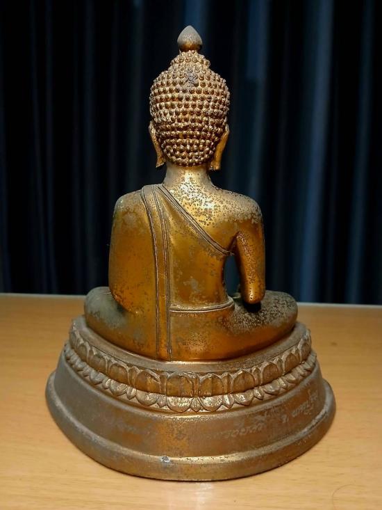 พระพุทธนวรัตโมภาส (หลวงพ่อโต) วัดบ่อตะกั่ว นครปฐม หน้าตัก 5 นิ้ว เนื้อทองเหลือง หล่อหนา ศิลป์สวย