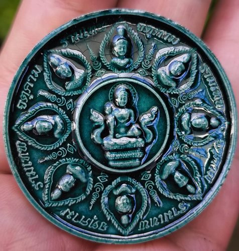 องค์จตุคามรามเทพ รุ่นบูรณะหลักเมือง ปี47 เนื้อผงดินเผาเคลือบเขียว สภาพสวย |