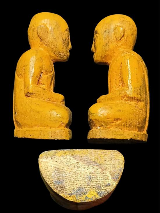พระรูปเหมือน ไม้โพธิ์แกะ ทาสีหรดาล ทั่วองค์ ศิลปะสวยงาม เข้มขลัง เก่าไม่ทราบที่ ครับ |