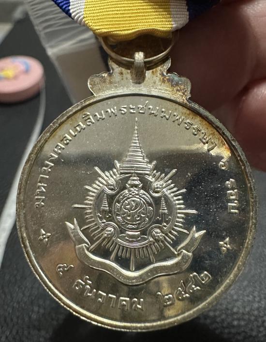 เหรียญเงิน แพรแถบ เหรียญที่ระลึก มหามงคลเฉลิมพระชนมพรรษา 6 รอบ รัชกาลที่9 พ.ศ.2542 แพแถบ แบบชาย