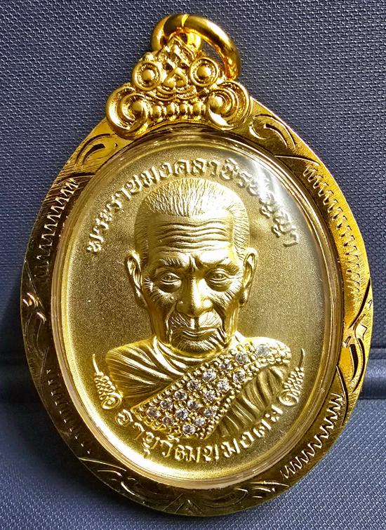 เนื้อชุบน้ำทองคำแท้ ฝังเพชรเต็มสังฆาฏิ เลี่ยมกรอบชุบทอง