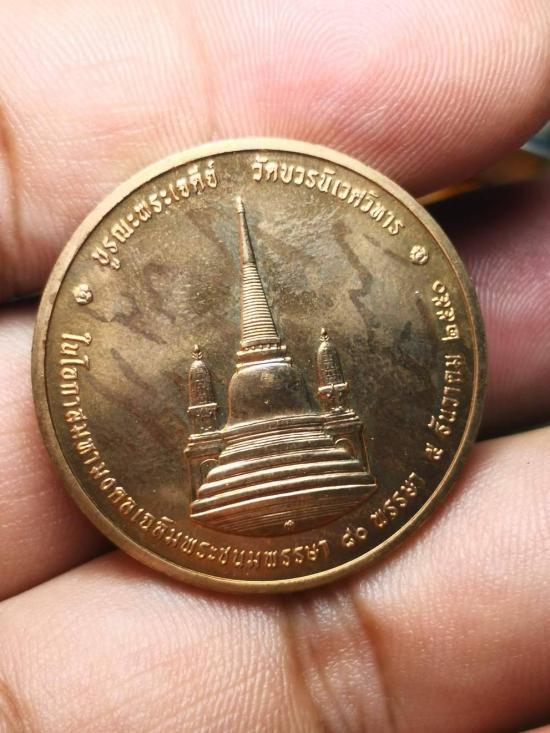 เหรียญในหลวงร 9 ทรงผนวช (ย้อนยุค) ออกวัดบวร ปี 50 เนื้อทองแดงสภาพตามรูปราคาเบาๆ |