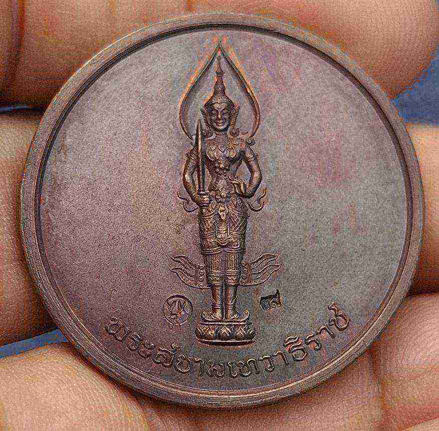 เหรียญสนทนาธรรม เป็นเหรียญที่รวมสถาบันชาติ ศาสนา และพระมหากษัตริย์ เอาไว้ในเหรียญเดียวกัน ด้านหน้าเป็นพระบรมสาทิสลักษณ์ พระบาทสมเด็จพระเจ้าอยู่หัว ทรงสดับพระธรรมเทศนาจาก สมเด็จพระญาณสังวร เนื้อทองแดง |