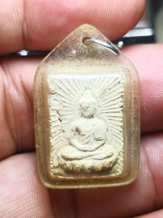 พระพุทธนั่งบัวเนื้อผงหลังยันต์ เรื่องเก่าไม่ทราบที่สภาพตามรูป |
