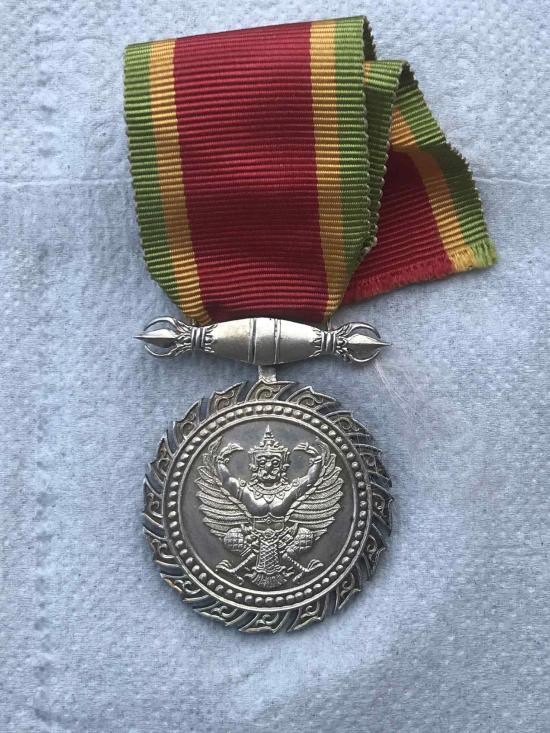 เหรียญจักรพรรดิมาลา รัชสมัยพระบาทสมเด็จพระปรมินทรมหาภูมิพลอดุลยเดช พ.ศ. ๒๕๐๗ ครุฑหลังช้าง "( เนื้อเงิน )"บำเหน็จแห่งความยั่งยืนและมั่นคงในราชการ"