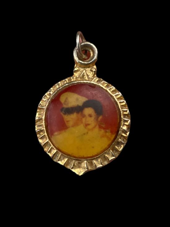 เหรียญภาพถ่ายคู่ในเลี่ยมทองเก่าแบบโบราณ ร9.(เคาะเดียวแดง) |