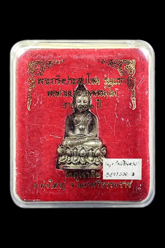 พระกริ่งประสบโชค รุ่นแรก พ่อท่านประ อายุ 112 ปี เนื้อนวะโลหะก้นเงิน (หมายเลข ๓๐๗ )วัดภูเขาดิน จ. นครศรีธรรมราช สร้าง 500 องค์ พร้อมกล่อง (( แดงวัดใจ 200 ))