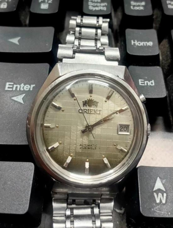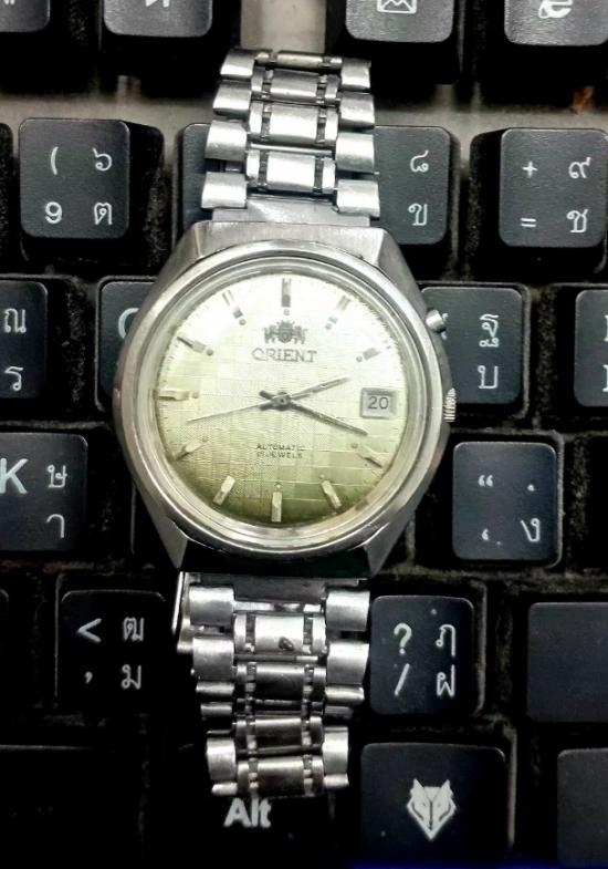 วินเทจ ORIENT Automatic 21 jewels 46741 Japan หน้า38มม. วันที่เปลี่ยนปกติเดินปกติ ปุ่มเล็กกดเปลี่ยนเร็ววันที่ใช้ไม่ได้ สายยาว22ข้อพร้อมใช้ครับ |