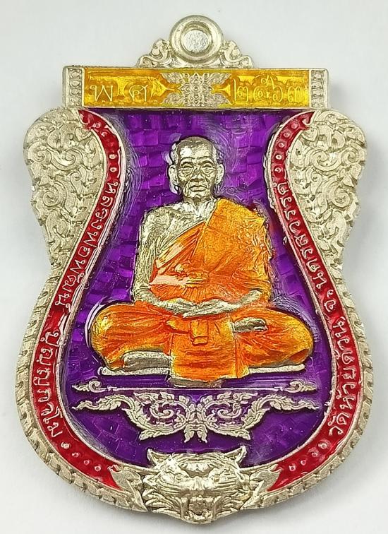 เหรียญเสมา "สารพัดรวย" หลวงพ่อพัฒน์ วัดห้วยด้วน เนื้อเงิน ลงยาขุ้ยพื้นสีม่วง (น้ำหนัก 16.03กรัม) เบอร์ 125 พร้อมกล่องครับ