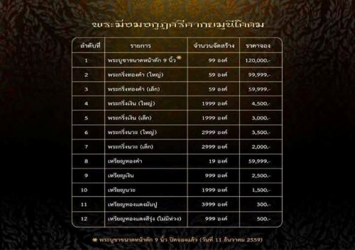 พระกริ่งมิ่งมงกุฏศรีศากยมุนีโคดม (ปี 2559)วัดศรีมิ่งมงคลวราราม จ.ลพบุรี