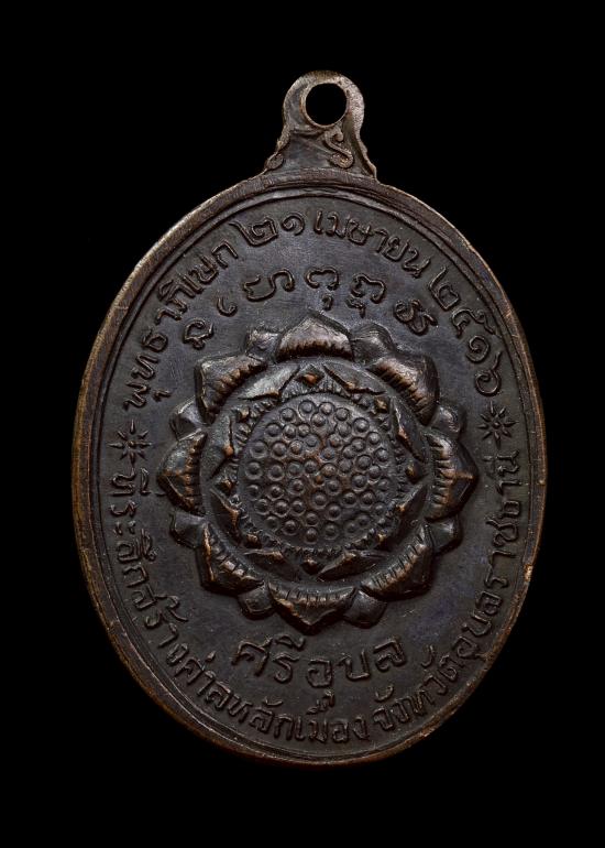 เหรียญพระเจ้าใหญ่อินทร์แปลง (ศรีอุบล) เนื้อทองแดง ปี 2516 จ.อุบลราชธานี (หลวงปู่ดูลย์ปลุกเสก)