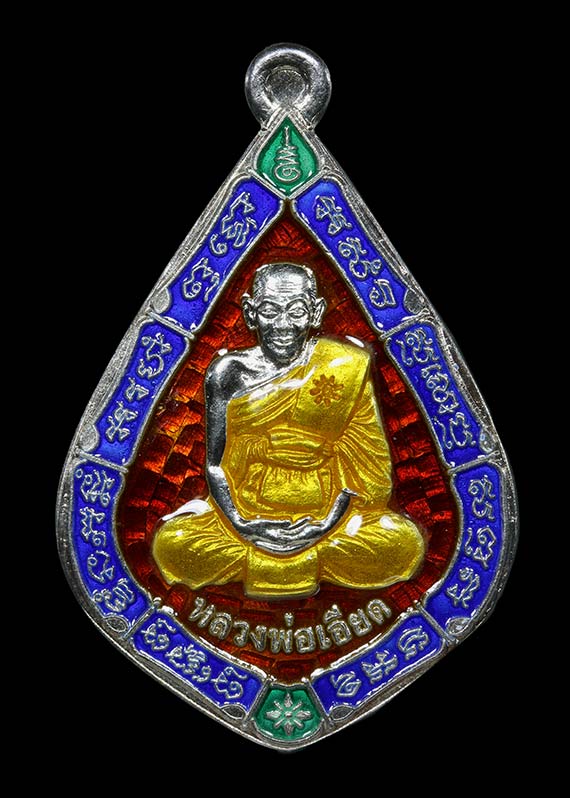 เหรียญรุ่นซื้อที่ดิน หลวงพ่อเอียด วัดไผ่ล้อม จ.อยุธยา ปี 54 เนื้อเงินลงยา 3 สี กล่องเดิม |