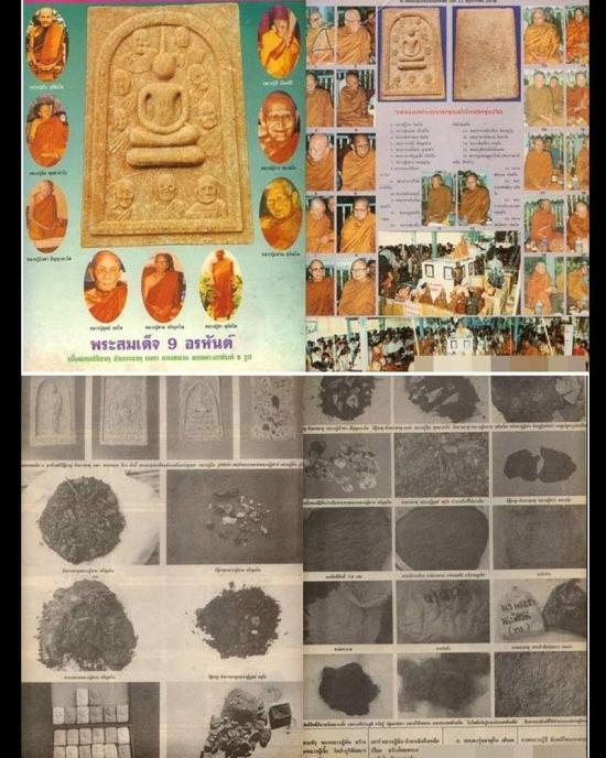 พระสมเด็จ 9 อรหันต์มวลสารดีมากมายเนื้อผสมอัฐิธาตุอังคารธาตุเกศาและชานหมากของพระอรหันต์ 9 รูปเป็นพระที่สร้างโดยเจ้าของนิตยสารพระโลกทิพย์,ฤทธิ์อำนาจเมื่อหลายปีมาแล้ว นิยมห้อยบูชากันในหมู่ศิษย์และฆราวาสที่นับถือครูบาอาจารย์สายพระป่าสายกรรมฐานเพราะเป็นพระดีและมีประสบการณ์กันมากมายปัจจุบันหายากแล้ว