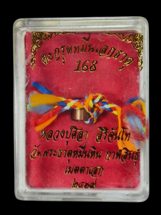 ตะกรุดหมื่อนโลกธาตุ ลป.ศิลา วัดพระธาตุหมื่นหิน ตอกโค๊ตศิลา+168 อีกด้านตอกโค๊ตยันต์ กล่องเดิม 100 แดงครับ |