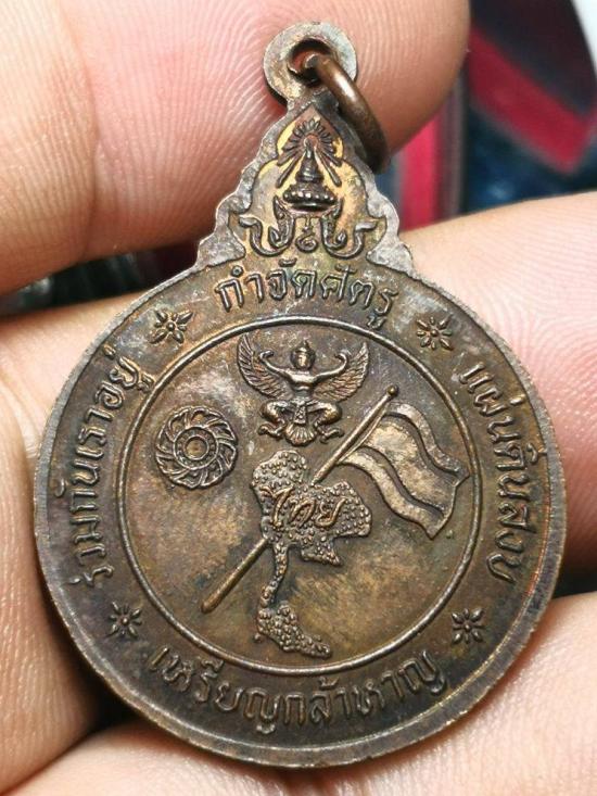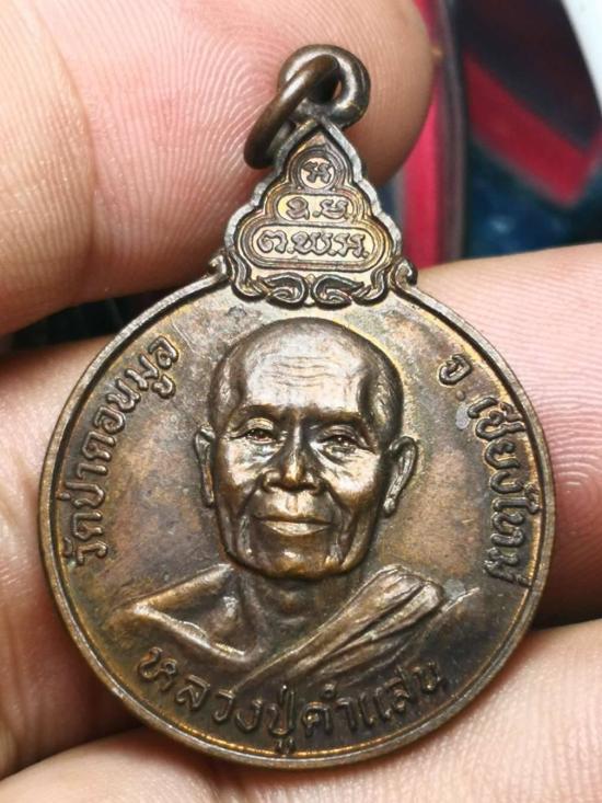 เหรียญหลวงปู่คำแสน วัดป่าดอนมูล เหรียญกล้าหาญ กำจัดศัตรู เนื้อทองแดงรมดำ สภาพเดิมตามรูปราคาเบาๆ |