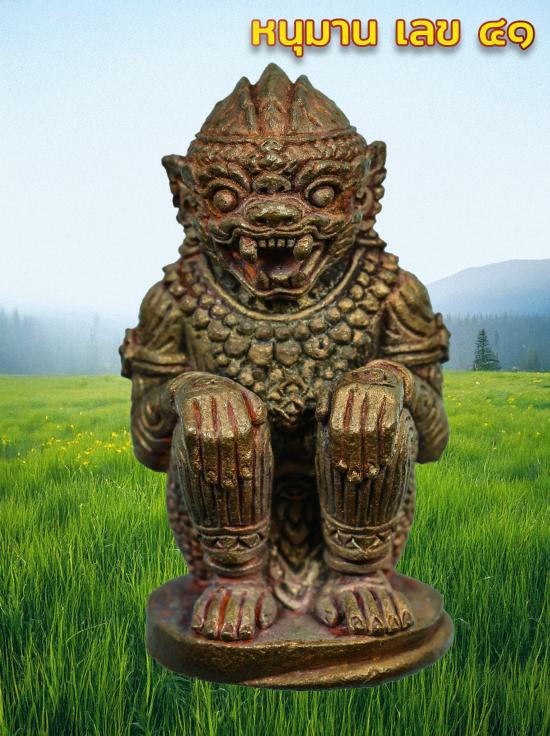 เลข 41 หนุมานชนะมารเนื้อทองแดงชนวนอุดผงพรายกุมาร หลวงปู่เขียว วัดห้วยเงาะปัตตานี ปี ๒๕๕๘ สูง ๓ ซม. สร้าง ๙๙๙ ตน |