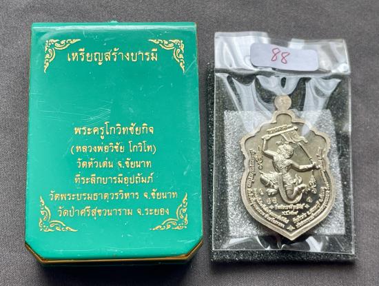 เหรียญเสมาสร้างบารมี หลวงพ่อวิชัย วัดหัวเด่น "เนื้ออัลปาก้าลงยา 3 สี" (เหรียญลุ้นพิเศษ) เลขมงคลรวย 88 |