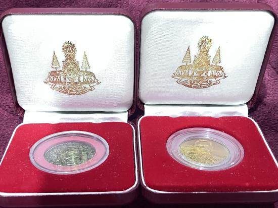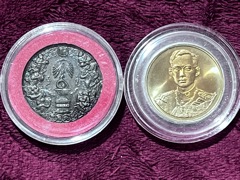 เหรียญที่ระลึก รัชกาลที่9 ปีกาญจนาภิเษก ครบรอบ50 ปี จำนวน 2เหรียญ พร้อมกล่อง |