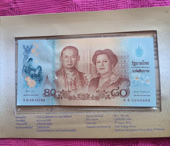 ธนบัตรเฉลิมพระเกียรติ๘๐พรรษา๑๒สิงหาคม๒๕๕๕แปดสิบบาท |