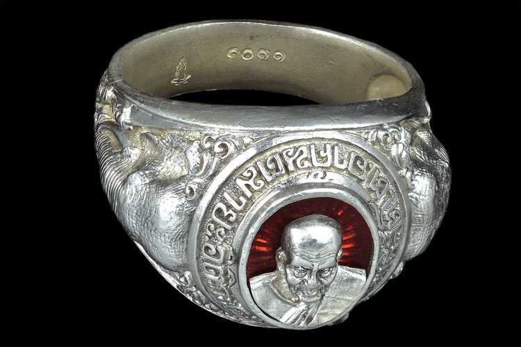 แหวนหลวงปู่ทวด วัดประสาทบุญญาวาส รุ่นฉลองกรุงรัตนโกสินทร์ 220 ปี เนื้อเงินลงยา หมายเลข1011 ขนาด2cm,