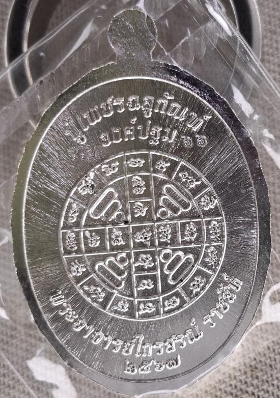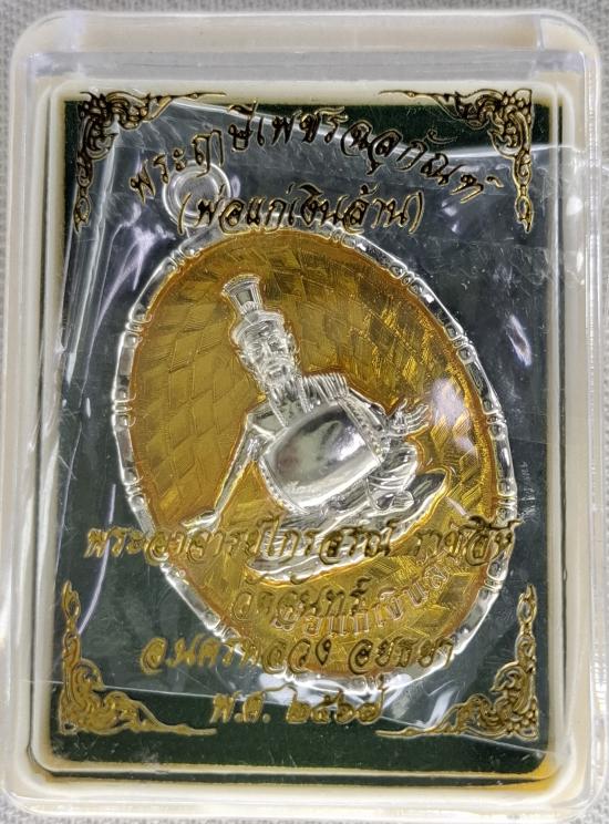 เหรียญพ่อแก่เงินล้าน ตีตะโพนเรียกทรัพย์ รุ่นแรก อุทยานพ่อแก่เงินล้าน จ.อยุธยา เนื้อกะไหล่เงินลงยาเหลือง |
