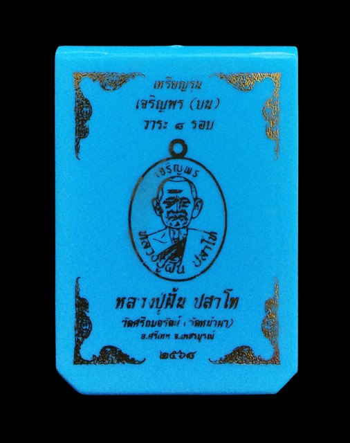 +!!เคาะเดียวllดง ตลอดสาย!!+ เหรียญ เจริญพร(บน) 8 รอบ หลวงปู่ฝั้น วัดศรีถมอรัตน์(หน้าผา) จ.เพชรบูรณ์ ท่านเป็นศิษย์หลวงพ่อเดิม (สามเณรเลี้ยงช้างหลวงพ่อเดิม) เนื้อทองเหลืองสอดไส้อัลปาก้า ฝังพลอยน้ำเงิน สร้างแค่ 30 เหรียญ พร้อมกล่องครับ