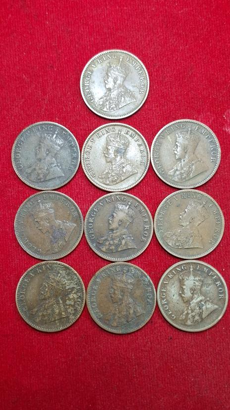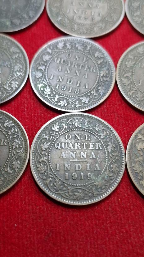 เหรียญ "One Quarter Anna" ของบริติชอินเดีย (British India) ทั้งหมด 10เหรียญ |