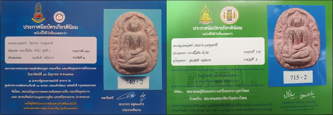 ใบประกาศใบที่ 1 ติดรางวัลที่ 1 งานสมาคมผู้นิยมพระเครื่องพระบูชาไทย จัดขึ้นที่ศูนย์ราชการแจ้งวัฒนะ งานประกวดจัดโดย นิตยสารสุดยอดพระเครื่องเมืองสยาม จัดขึ้นเมื่อวันที่ 7 เมษายน 2562