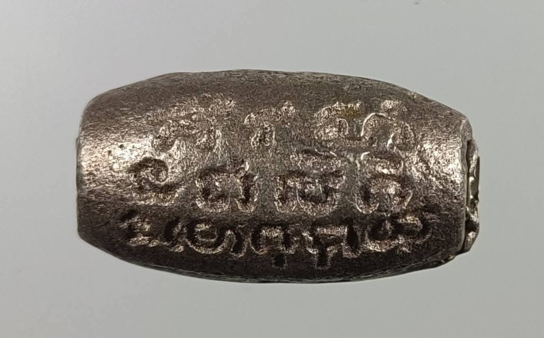 ลูกสะกด ยันต์พระราหู รุ่นสุริยุปราคา ปี 2538 หลวงพ่อเกษม เขมโก เนื้อชินปรอท ด้านในฝังตะกรุด