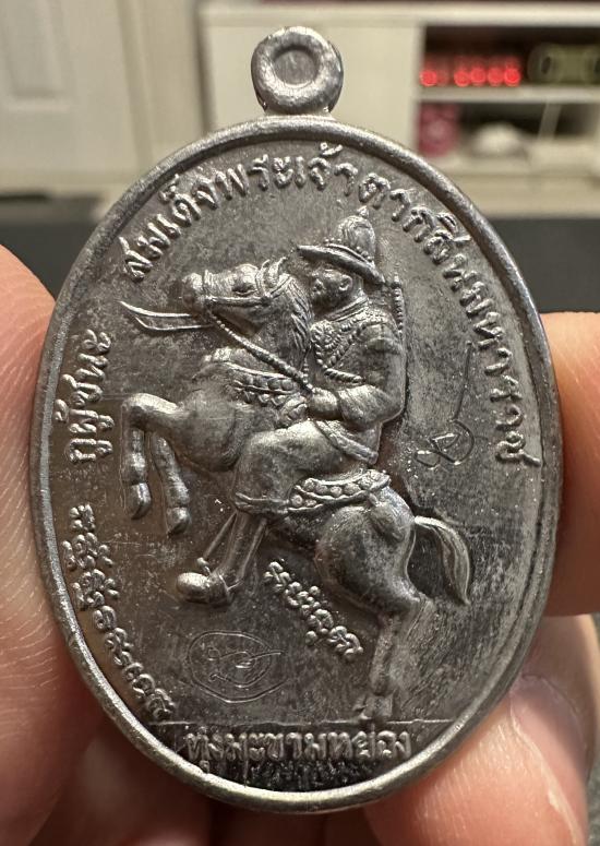 เหรียญสมเด็จพระเจ้าตากสินมหาราช "กูผู้ชนะ"ณ.ทุ่งมะขามหย่อง (อาจารย์ต้อม วัดโพธิ์เผือก จ.อยุธยา เจ้าอาวาสองค์ปัจจุบันปลุกเสก) เนื้อตะกั่ว ด้านหลังมียันต์เสือคล้ายหลวงพ่อเปิ่น |
