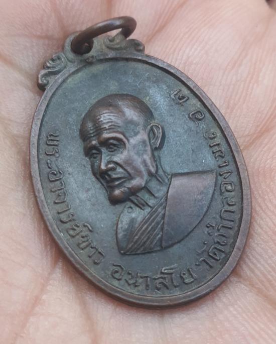 วัดใจเหรียญรูปไข่หลังอัฐบริขาร หลวงปู่ขาว อนาลโย วัดถ้ำกลองเพล จ. หนองบัวลำภู สร้างปี 2520 |