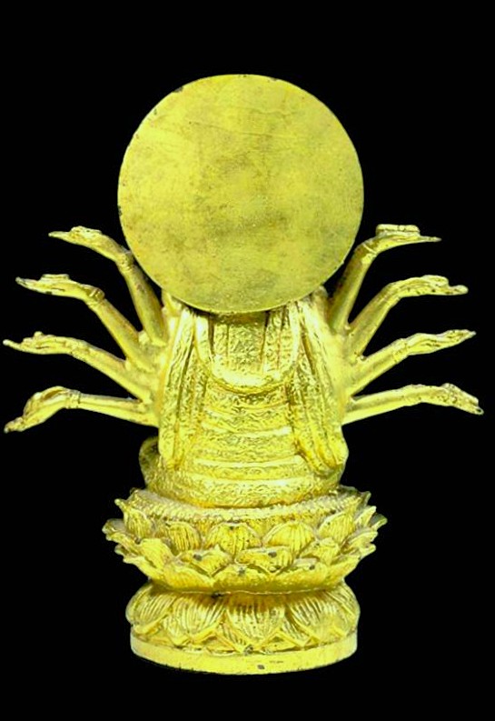 รูปหล่อเจ้าแม่กวนอิม ปางพันกร เนื้อโลหะผสมขนาดบูชา หน้าตัก3นิ้ว เนื้อหาเก่ามีศิลปะสวยปราณีต เช่าเหมามาแถวย่านเยาวราชหลายปีแล้วจำไม่ได้เจ้าของเดิมบอกว่าเช่ามาจากศาลเจ้าแม่กวนอิม ผ่านพิธีการปลุกเสกเบิกเนตรแล้ว ประมาณการสร้างที่เจ้าของบอกเช่ามาประมาณปี2515 เอาเป็นว่าปีนี้ใครทานเจ เคาะเจ้าแม่ไปบูชาจะช่วยเสริมดวงการเงิน การงาน การเรียน การค้าขาย และความรักให้ประสบผลสำเร็จดังพรที่ขอ |