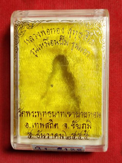 รุ่นแรกพระปั้มพิมพ์รูปเหมือน หลวงพ่อทอง สุทธสีโล ออกวัดพระพุทธบาทเขายายหอม ปี 55 เนื้อ ทองแดงรมดำ หมายเลข 4693 สภาพสวย เคาะเดียวแดง |