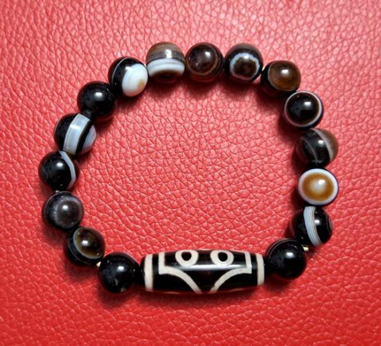 ประคำข้อมือหินอาเกต ขนาด 10 มิล หัวหินทิเบต 7 ตา ร้อยด้วยเอ็นยืด ขนาดฟรีไซด์ (กท.87)