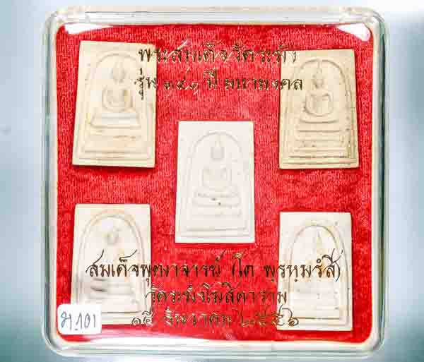 กล่องเป็นกล่องเดิมชุดกรรมการเล็ก ซึ่งประกอกด้วย พิมพ์ใหญ่เกศทะลุซุ้ม(ประทาน) พิมพ์ใหญ่(ประทาน) พิมพ์เส้นด้าย พิมพ์เกศบัวตูม และพิมพ์ฐานแซม แต่จะเป็นเนื้อแตกลายงา แต่ในชุดนี้ ได้เอาพระชุดแช่น้ำมนต์มาใส่ในกล่อง กรรมการเล็ก เอาไปแจกของขวัญปีใหม่ ราคาเบาๆ