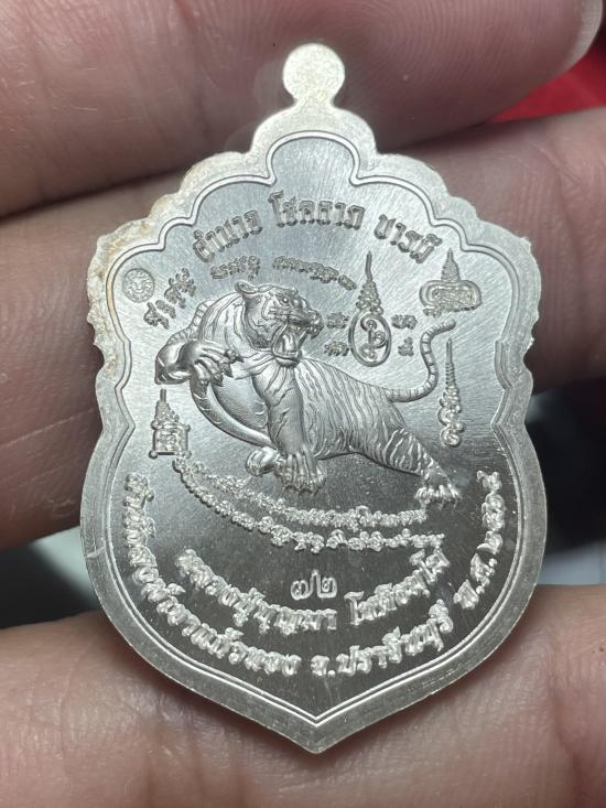 เหรียญเสือคาบดาบ หลวงพ่อบุญมา เนื้อเงินลงยา เลข 72 สวยเดิมๆพร้อมกล่องคับ