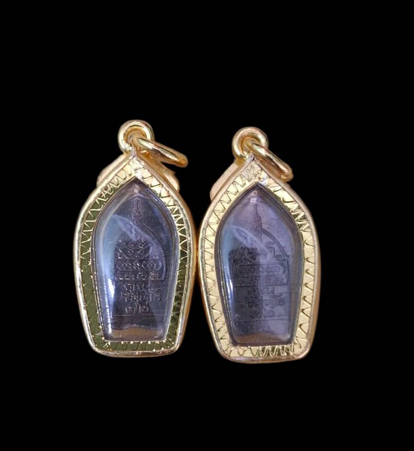 มา 2 องค์ พระปรกใบมะขาม หลวงพ่อคูณ ปริสุทโธ 72 รุ่นเมตตาชายเเดนปี 2537 เนื้อนวะ พร้อมเลี่ยมกรอบชุบทองไมครอน พร้อมกล่อง