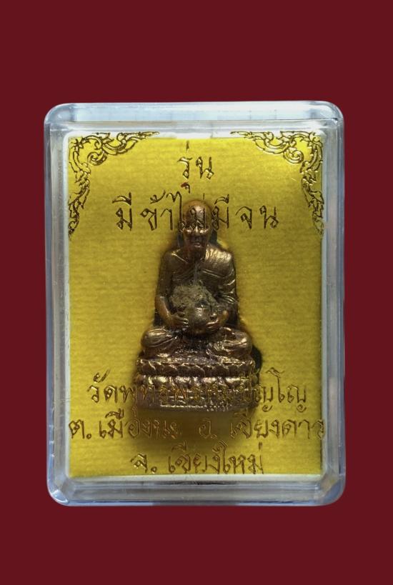 รูปหล่อหลวงปู่ดู่นั่งอุ้มบาตรรุ่น (มีข้าไม่มีจน) หลวงตาม้าวัดถ้ำเมืองนะ ต.เมืองนะ อ.เชียงดาว จ.เชียงใหม่ หลวงปู่ดู่นั่งอุ้มบาตร (ลอยองค์) สูง 2 ซม.