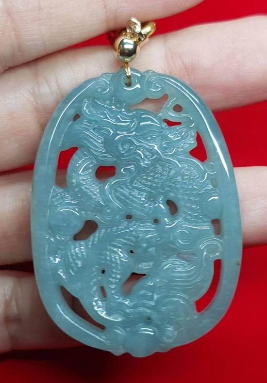 จี้มังกรหยก (มังกรนำโชค) วัดมังกรกมลาวาส (เล่งเน่ยยี) เนื้อหยกสีโอเชี่ยนบลู สวยๆ |