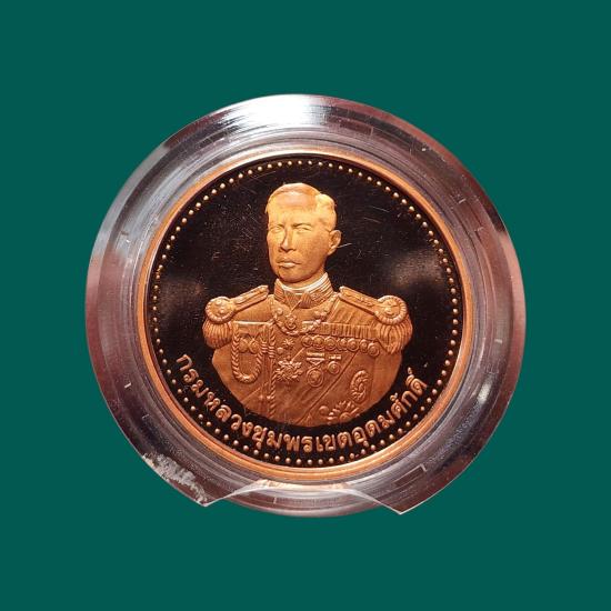 เหรียญทองแดงขัดเงา กรมหลวงชุมพร หลวงพ่อเงิน พ.ศ.2537 สภาพสวยตามรูป |