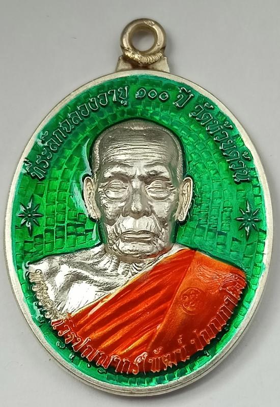 เหรียญห่วงเชื่อมหลังเต่า รุ่น"อมตะพัฒน์ปาฏิหาริย์" หลวงพ่อพัฒน์ วัดห้วยด้วน เนื้อเงินลงยาสีเขียว เบอร์ 38 พร้อมกล่องเดิมครับ (น้ำหนักเหรียญ 20.50กรัม)