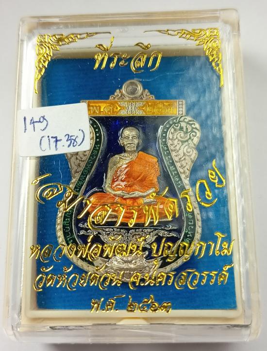 เหรียญเสมา "สารพัดรวย" หลวงพ่อพัฒน์ วัดห้วยด้วน เนื้อเงินลงยาขุ้ยพื้นสีน้ำเงิน (น้ำหนัก 17.38กรัม) เบอร์ 149 พร้อมกล่องครับ