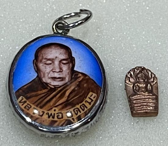 ++++50+++++ล็อกเกตกับปรกใบมะขาม เนื้อทองแดงรุ่นแรก หลวงพ่ออุตตมะ วัดวังวิเวกการาม จ.กาญจนบุรี สวยทั้งคู่ครับ