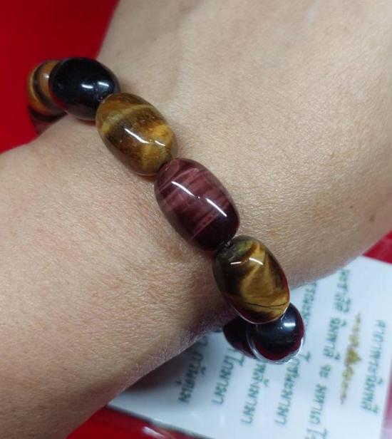 ***วัดใจ***สร้อยข้อหินไทเกอร์อาย 3 ทหารเสือ เม็ดใหญ่ พร้อมการ์ดคาถา คุณแม่บุญเรือน โตงบุญเติม วัดอาวุธฯ |