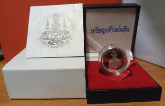 เหรียญเจ้าแผ่นดิน ในหลวงร.9 ทรงครองสิริราชสมบัติครบ 50ปี ปี2539 (((เนื้อเงิน ขัดเงาสามมิติ))) ไม่ผ่านใช้ กล่อง+ใบ*เลขเหรียญไม่ตรงใบ*
