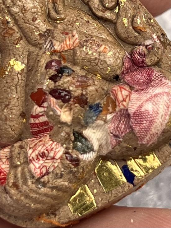 พระปิดตากนกข้างบูชาครู หลวงพ่อนงค์ วัดบางน้ำชน (ลูกศิษย์หลวงปู่โต๊ะ) เนื้อผงผสมแบงค์ ฝั่งเพชร พลอย ตระกรุดฝาบาตร3ดอก |