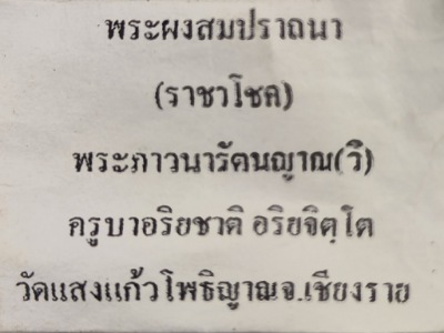 พระผงสมปราถรนา(ราชาโชค)เนื้อผงเกษร ครูบาอริชาติ อริยจิตฺโต วัดแสงแก้วโ พธิญาณ เชียงราย