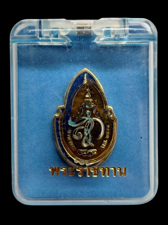 เข็มกลัดพระราชทาน สก. กะไหล่ทองลงยาสามสี พร้อมกล่องเดิม |