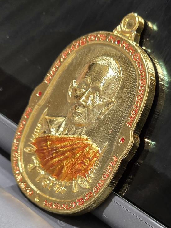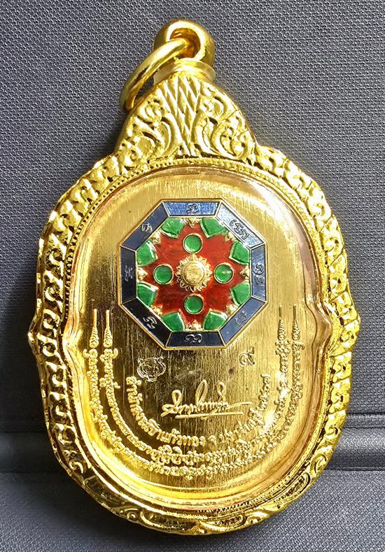 เนื้อชุบทอง ลงยาจีวร ขอบแดง หลังลายเซ็น ตอกหัวเสือ ลงยายันต์