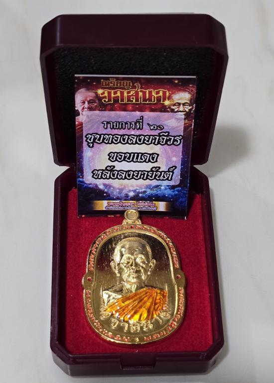 เลข ๙....เหรียญรุ่น"วาสนา" หลวงปู่บุญมา โชติธัมโม วัดเขาแก้วทอง ปราจีนบุรี เนื้อชุบทอง ลงยาจีวร ขอบแดง หลังลงยายันต์ (ใส่กรอบชุบทองเข้ารูปฉลุข้าง สวยมากครับ) หมายเลข ๙....พร้อมกล่อง เคาะแรกแดงเบาๆ |